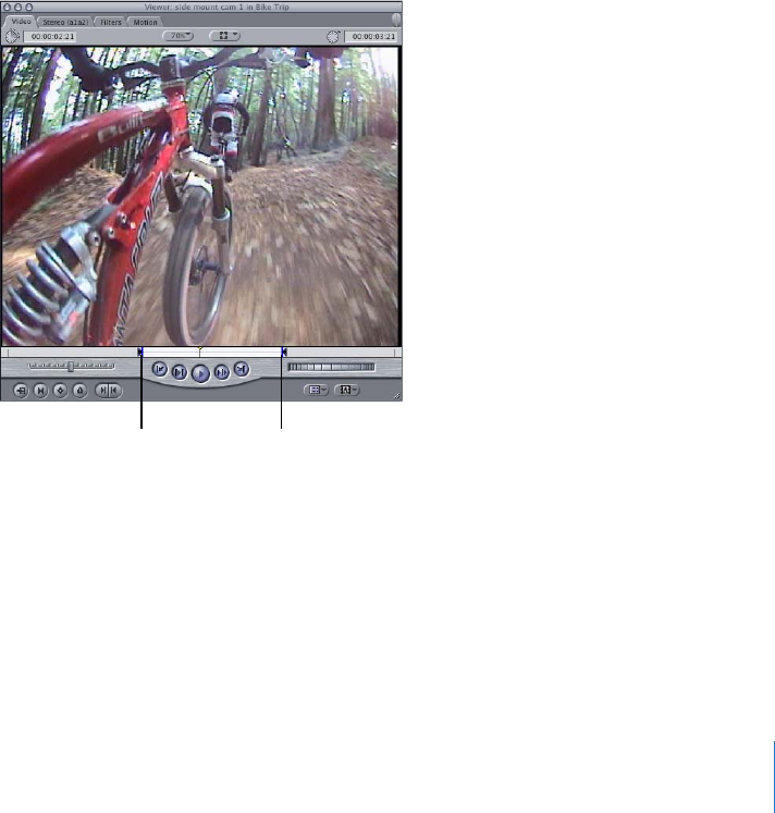 2 Specify In and Out points for your source clip in the Viewer.