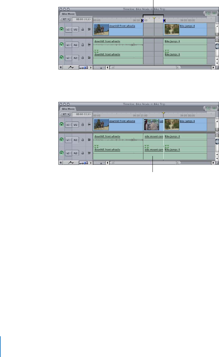 5 If you do an overwrite edit, you’ll see that your clip, defined by the In and Out points in