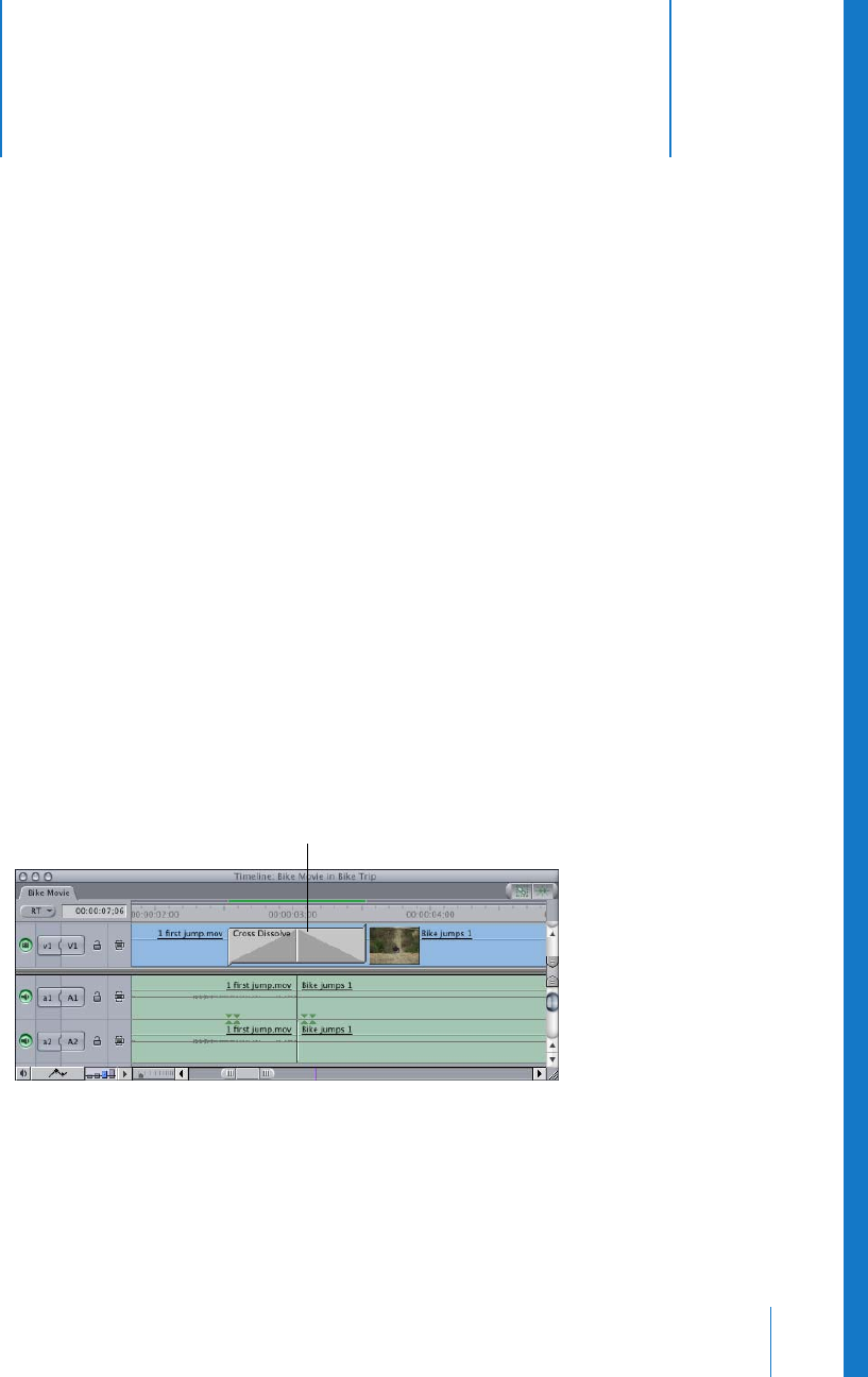 that overlap past the edit point. A transition is displayed as an overlay on top of the