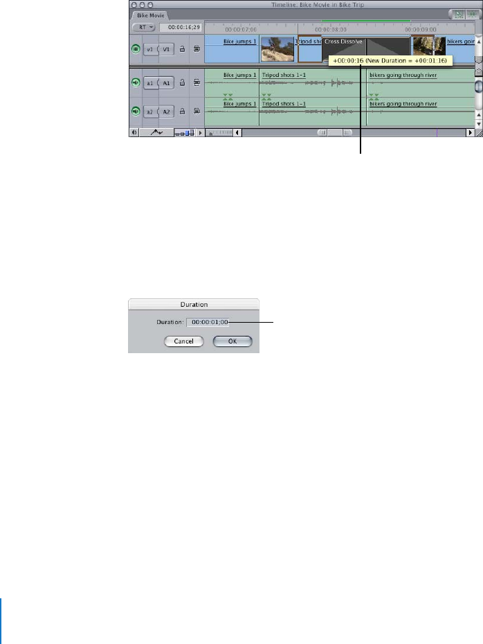 2 In the Duration dialog, enter a new duration for the transition, then click OK.