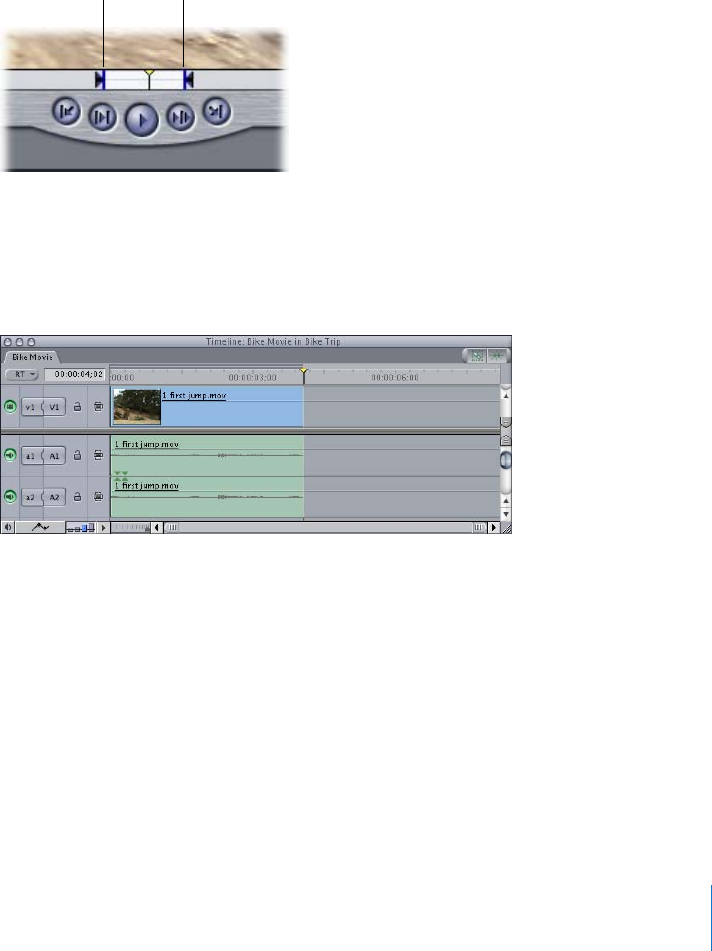 2 Specify In and Out points for your source clip in the Viewer. See “Setting In and Out