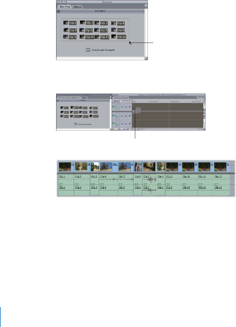 3 Drag a marquee around all of the storyboard clips to select them.