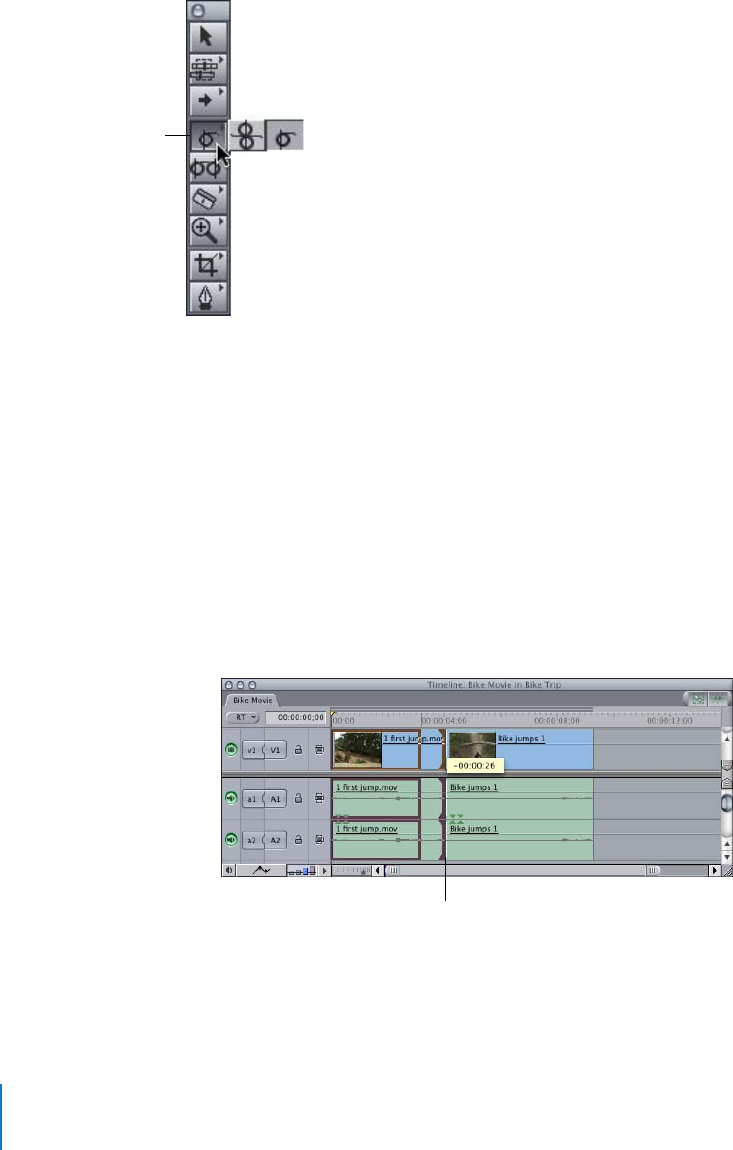 • Markers: If you drag a clip’s In point, you see two markers. One is a boundary